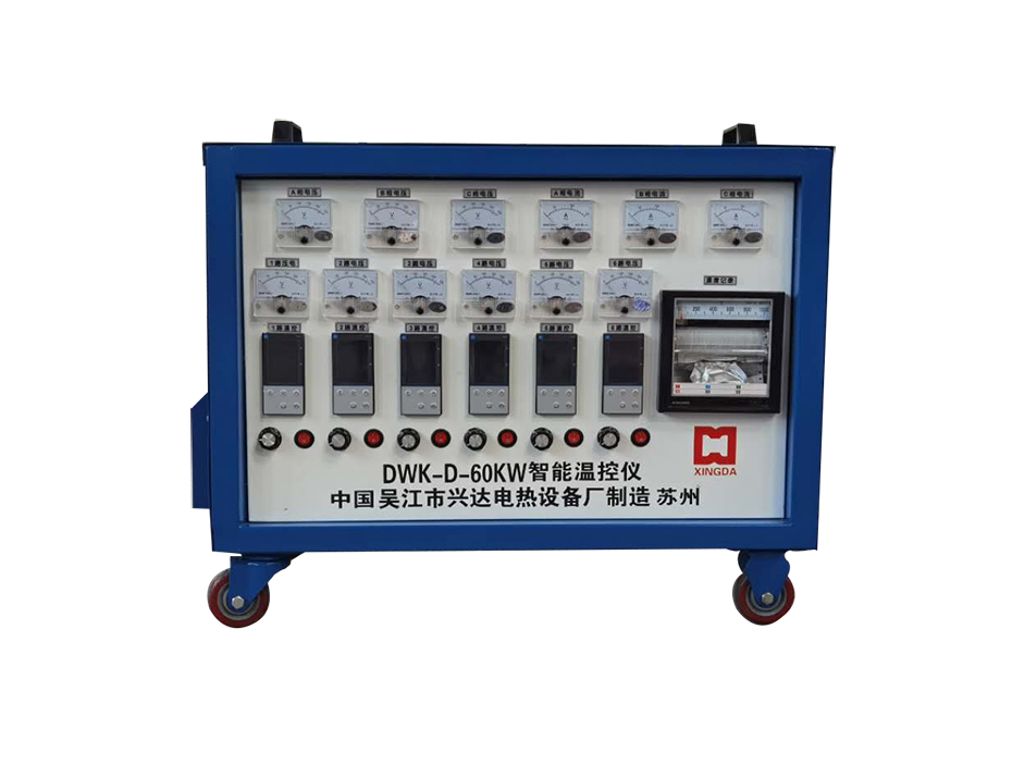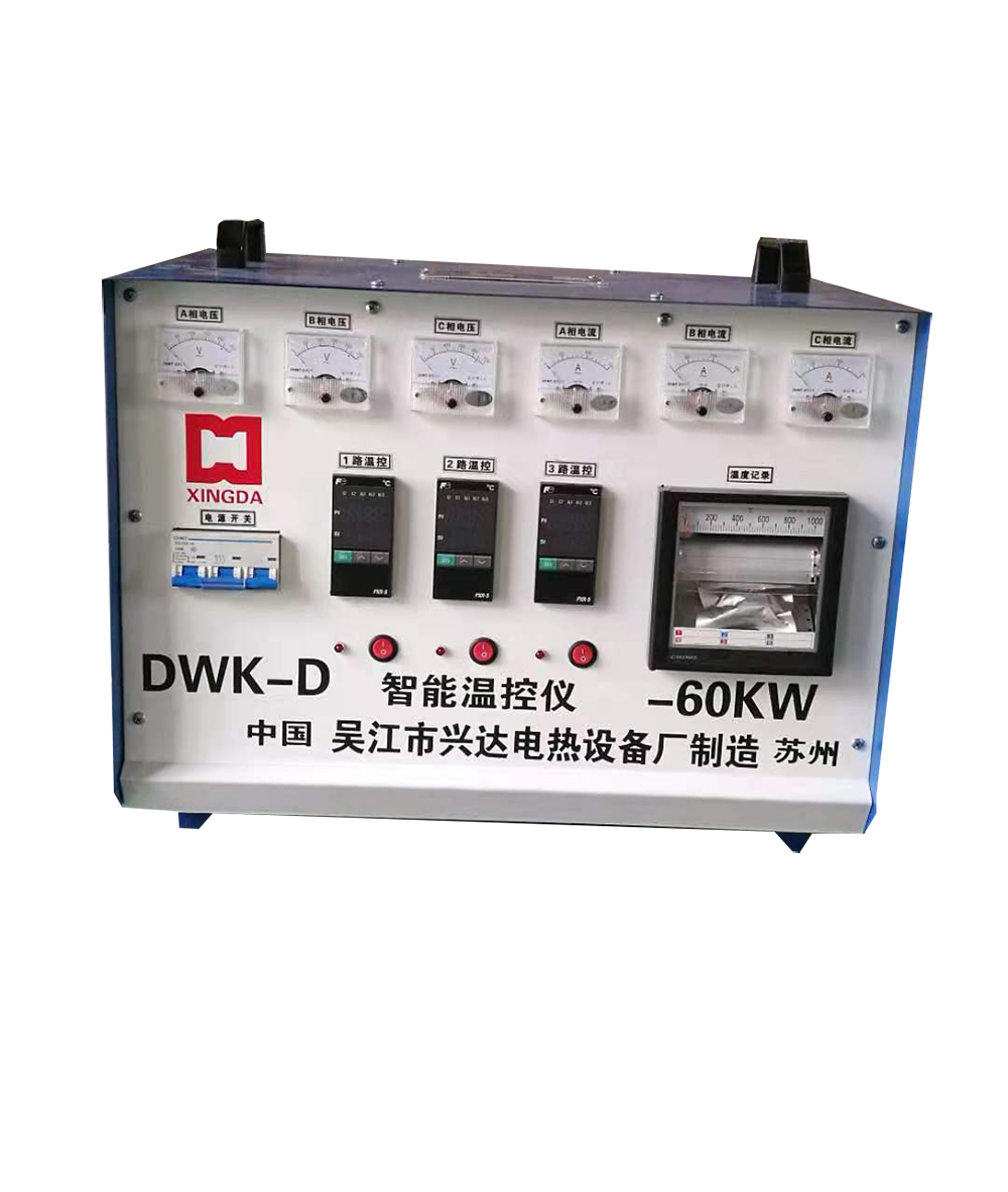 DWK-D-360KW型智能温控仪 概述: DWK-D型采用先进的进口温度程序及控制仪表,具有PID控制程序设定和自适应控制功能,即可按工艺温度曲线设定并运行,温度自动记录,既能保证产品质量,也可延长加热器寿命。本机可与各种加热器配套,用于焊前预热及焊后处理。 大型安装工程中的热处理,由于环境条件十分恶劣,且往往缺少维修技术及配件,根据这一特点我厂设计生产了通用性强,高性能,高可靠的DWK-D型进口智能温控仪。
